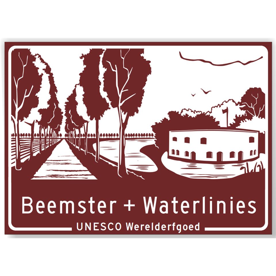 De 'bruine borden' langs de rijkswegen in het werelderfgoedgebied vertelden passanten eerder alleen over de Stelling van Amsterdam en de Nieuwe Hollandse Waterlinie. Daar brengt een nieuw ontwerp verandering in.