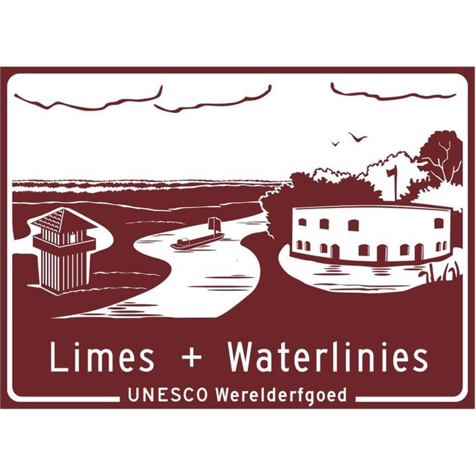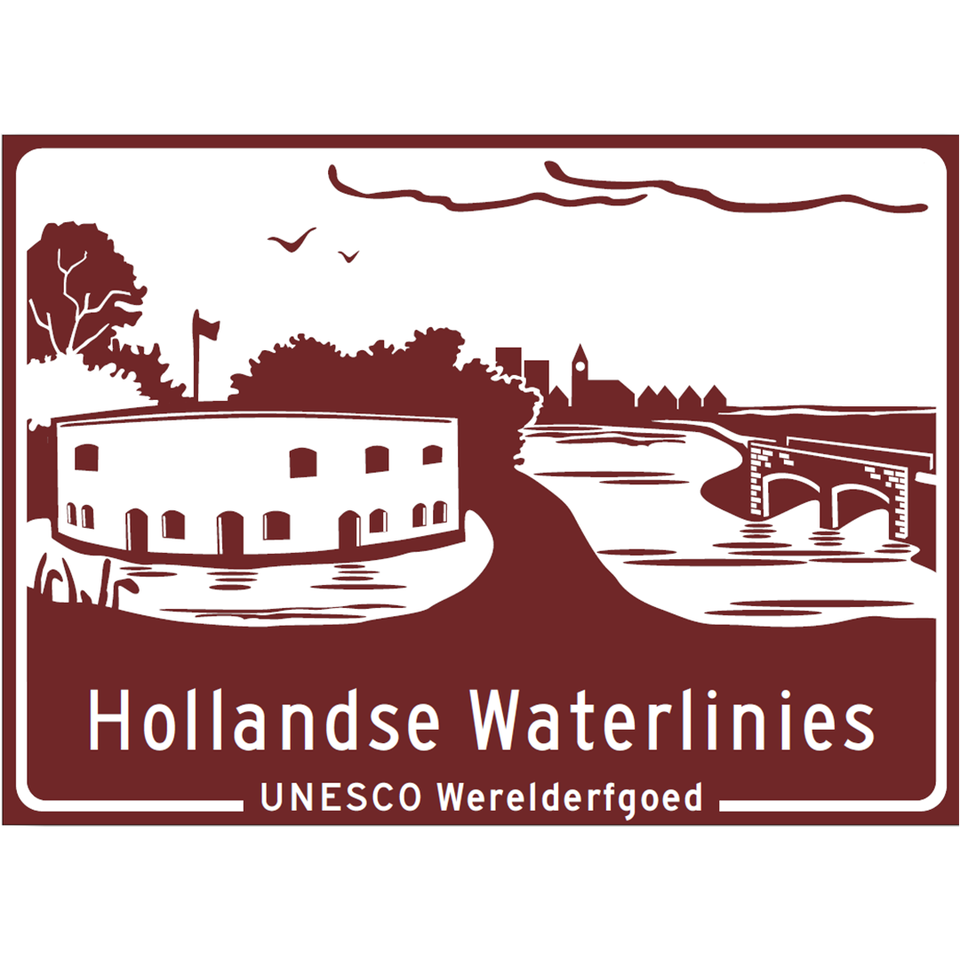 De oude bruine ANWB-borden langs de rijkswegen zijn gefaseerd vervangen door een nieuw ontwerp dat de passant informeert over UNESCO werelderfgoed Hollandse Waterlinies. Op het bord is op de voorgrond een weergave van een fort en een sluis zichtbaar, omgeven door bomen en groen. Op de achtergrond tekent zich een stad af die beschermd wordt door de waterlinie. Zo laat het bord de verschillende elementen van de waterlinie goed zien: het groene landschap dat ooit werd gebruikt als militaire verdedigingsvlakte, de waterwerken die vroeger het land inundeerden en nu vaak nog helpen bij watermanagement en de militaire verdedigingswerken die zorgden voor een sterk front.